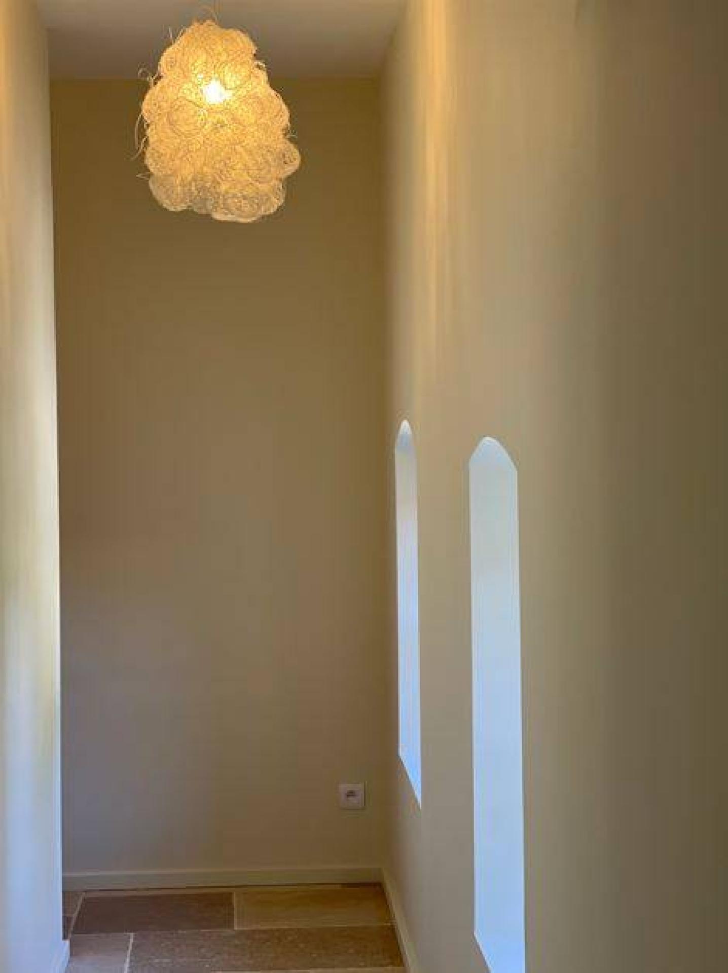 En accord avec mes clients, je n'ai pas voulu toucher aux façades, elles sont restées en pierres apparentes comme elles l'étaient depuis le 18 éme siècle, notre désir commun étant de conserver au maximum l'identité de cet incroyable lieu ou le temps s'est arrêté depuis de nombreuses décennies.